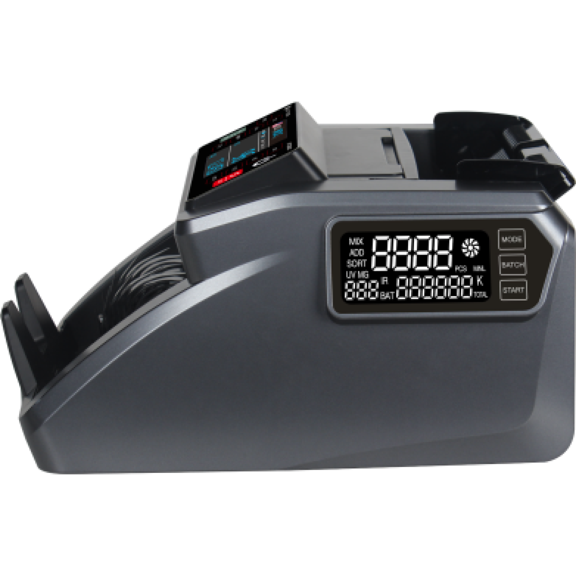 Detects counterfeit notes using advanced MG, UV, IR, and DD sensors