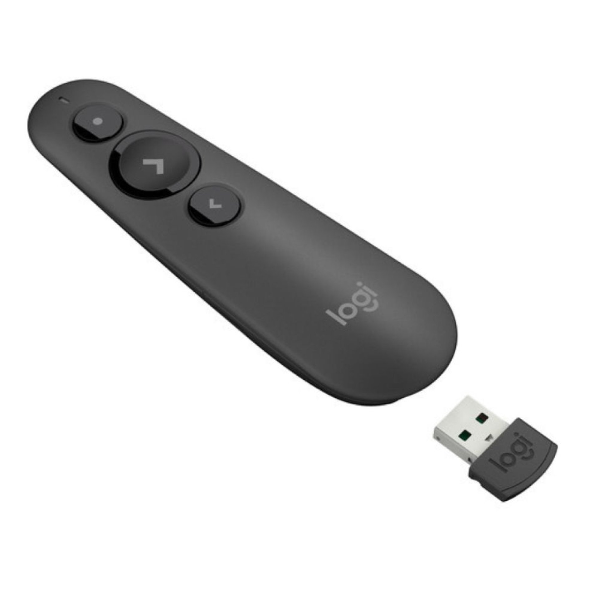 The Logitech R500 Wireless Presenter – Gray (910-005333) is a simple, intuitive presentation remote designed for professionals, lecturers, and frequent presenters. It features a red laser pointer, three-button navigation, and dual connectivity options (Bluetooth or USB receiver). With a long wireless range and ergonomic design, it ensures smooth control during presentations across multiple platforms.